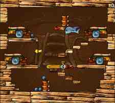 Zhoďte "T" oceľ doprava napravo od palivového článku a zhoďte palivový článok doľava. Nasuňte "T" oceľ doľava, posuňte ju o políčko doľava, zdvihnite ju hore a malou pod ňu podsuňte pec. Pustite "T" oceľ a malou posuňte pec čo najviac doľava. Presuňte šikmú oceľ napravo od "J" ocele a presuňte ju až na okraj (nesmie spadnúť), zdvihnite a nasuňte doprava "J" oceľ, posuňte palivovú tyč s kolesom doprava tak, aby sa palivová tyč dala zdvihnúť a nasunúť doľava. Zdvihnite palivovú tyč, nasuňte ju doľava, ešte zdvihnite a nasuňte doľava tak, aby nevyčnievala (v podstate "na doraz"). Zhoďte "J" oceľ do tretieho otvoru zľava, posuňte doľava, zdvihnite šikmou oceľou o dve políčka, posuňte palivovú tyč o políčko doľava a pustite šikmú oceľ. Zdvihnite "T" oceľ hore a posuňte pec ceľkom doprava, pustite oceľ. Zdvihnite šikmú oceľ a pod "J" oceľ podsuňte pec, potom šikmú oceľ "odpracte" napravo od otvorov, posuňte "J" oceľ doprava, zdvihnite "T" oceľ a vráťte pod ňu pec, presuňte "J" oceľ o dva otvory doprava a zhoďte doľava, šikmú oceľ presuňte do tretieho otvoru zľava, posuňte klietku doľava, presuňte šikmú oceľ o políčko doľava a posuňte klietku. Zhoďte šikmú oceľ doprava (na výčnelok, nie že spadnu do pravého dolného rohu!), posuňte "J" oceľ doprava, presuňte ju do tretieho otvoru zľava, posuňte ju doľava a potom doprava, zdvihnite "T" oceľ prisuňte pec k "J" oceli, šikmou oceľou nadvihnite "J" oceľ a zachyťte ju pecou, vráťte šikmú oceľ na výčnelok vpravo, zachyťte veľkou "J" oceľ, posuňte pec doľava, zdvihnite "J" oceľ a podsuňte pod ňu pec tak, aby spadla "dovnútra". Posuňte teraz "J" oceľ s pomocou pece napravo od otvorov, posuňte pec k "T" oceli, zdvihnite "T" oceľ a vložte ju "do" pece. Posuňte "T" oceľ na peci doprava tak, aby kotol bol nad druhým otvorom zprava, "T" oceľ zhoďte z pece do prvého otvoru zprava. "J" oceľ presuňte "do" pece, presuňte "J" oceľ doľava tak, aby kotol bol nad tretím otvorom zprava, mimozemštana dopravte spoločnými silami napravo od "J" ocele, zhoďte "J" oceľ doľava z pece, mimozemšťana posuňte "do" pece, posuňte "J" oceľ o políčko doprava, potom posuňte "T" oceľ o políčko doprava a mimozemšťana doľava (posuniete klietku).