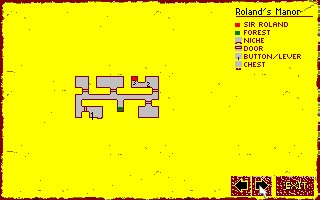 zeď zmizí. Promluv s Rolandem na pozici 3. Seber Rolandův klíč a otevři