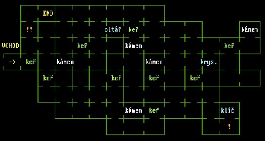 doleva, 2x dolů, doprava, nahoru. Jsi u zelených krystalů. Do levého