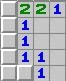 - všetky tri spodné polia sú zamínované. Trojka ukazuje, že spodné tri polia budú s mínami.