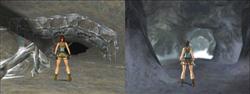 Vyskočila po kleci na skálu a po římsách rychle přeskákala doleva. Po římse přeručkovala doleva za roh, skočila dozadu a přeběhla po zdi. Skočila na římsu, chytila se a přeručkovala doleva. Vyskočila nahoru, sebrala náboje a prošla chodbou. Dole sebrala náboje, skočila na kryt a pak střelila do terče (musíte se kamerou podívat nahoru). Přes kámen se dostala do místnosti.
